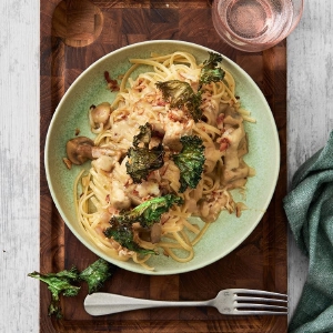 Krämig (svamp)pasta med halloumi och grönkål