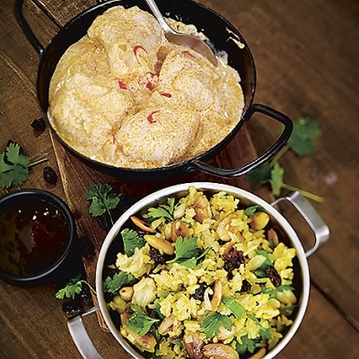 Sänk värmen och vänd ner mango chutney och yoghurt. Tänk på att yoghurt lätt kan skära sig om den kokar.
