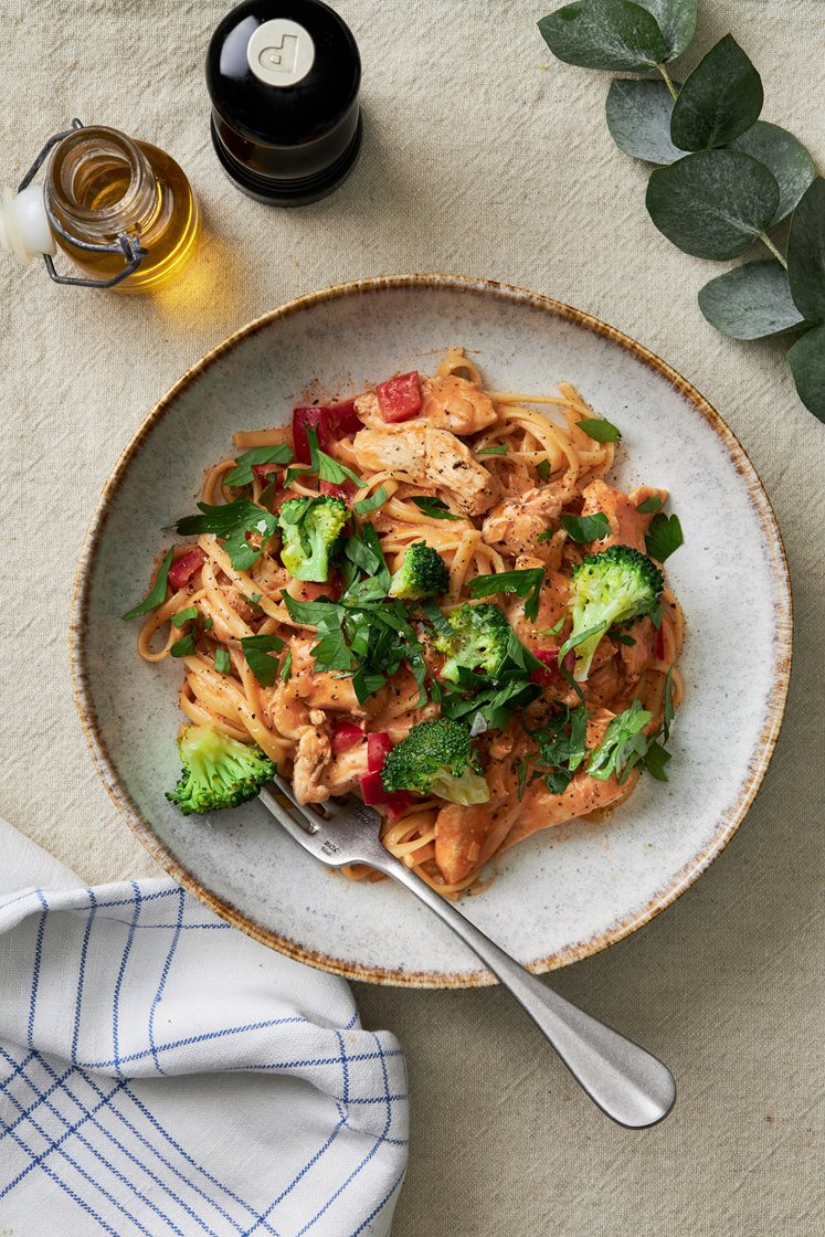 Krämig kycklingpasta med paprika och broccoli