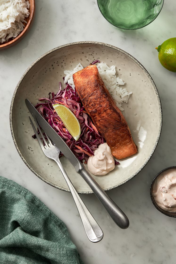 - Strimla rödkålen och lägg i skålen. Massera in dressingen.